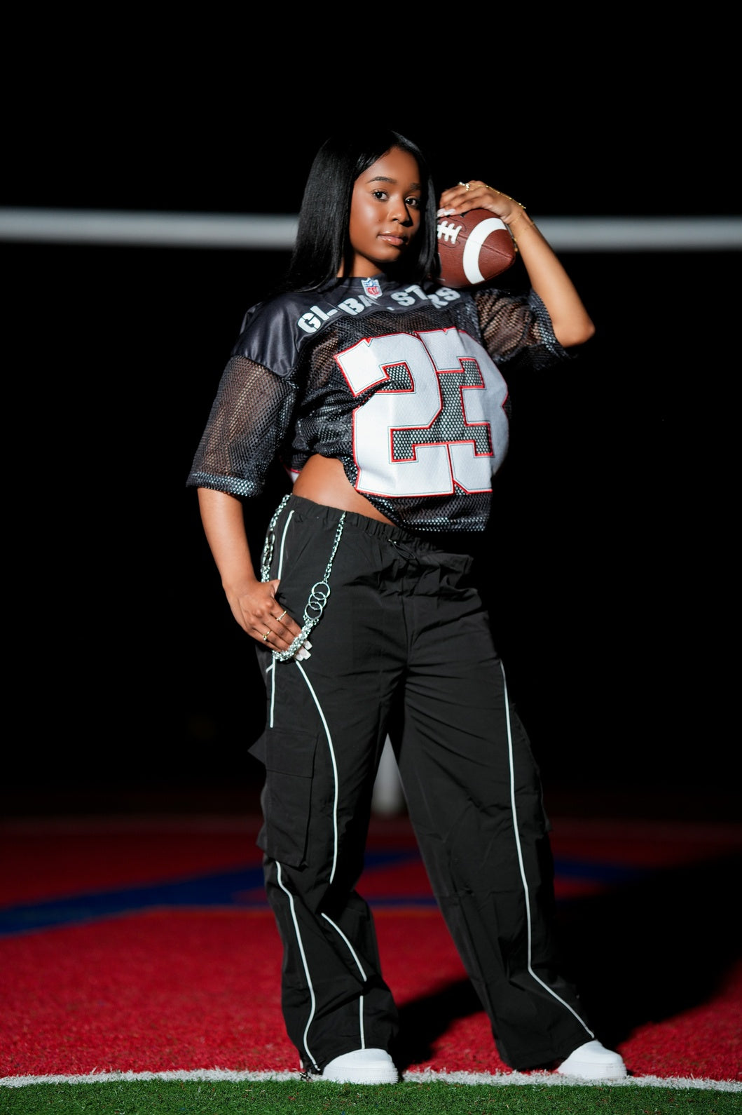 Elevate your fit with the GLOBAL STARS #23 Jersey — where street energy meets athletic precision. Designed for those who move with intent, this piece combines a premium mesh construction with oversized applique detailing to deliver a bold yet effortless look.
